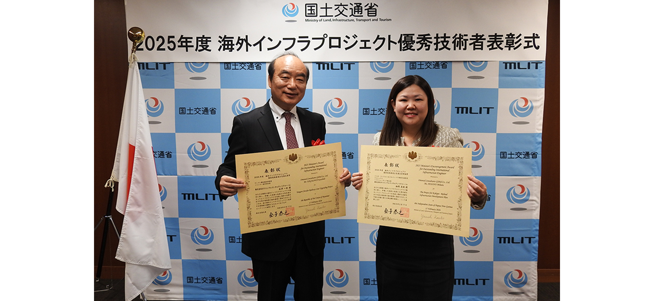 海外インフラプロジェクト技術者認定・表彰 長澤 一秀 国土交通大臣賞受賞 細野 美晴 国土交通大臣奨励賞受賞