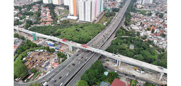 インドネシア国 LRTジャカルタフェーズ1B 難工事である長大橋の桁閉合式を実施